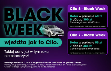 Szczegóły oferty: Pakiet obowiązuje tylko na przejazdy w ofercie „Na doby”. Inne opłaty z oferty pozostają bez zmian. Pakiet jest ważny 30 dni i musi być wykorzystany w czasie jednego najmu.